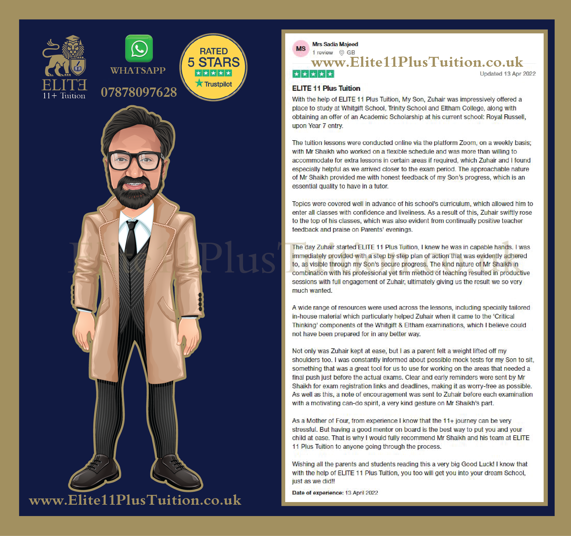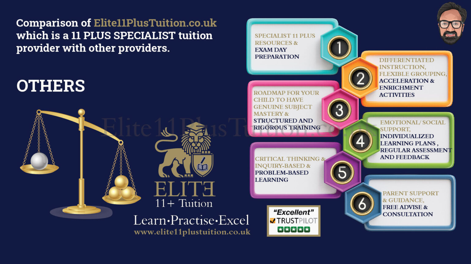 Elite11PlusTuition offers a comprehensive curriculum covering all 11 Plus exam components, including English, Mathematics, Verbal, and Non-Verbal Reasoning and Creative Writing. Our interactive and stimulating lessons utilize the tried and tested teaching methodology, ensuring your child is well-prepared and genuinely enjoys learning, fostering a lasting confidence for achieving academic excellence.