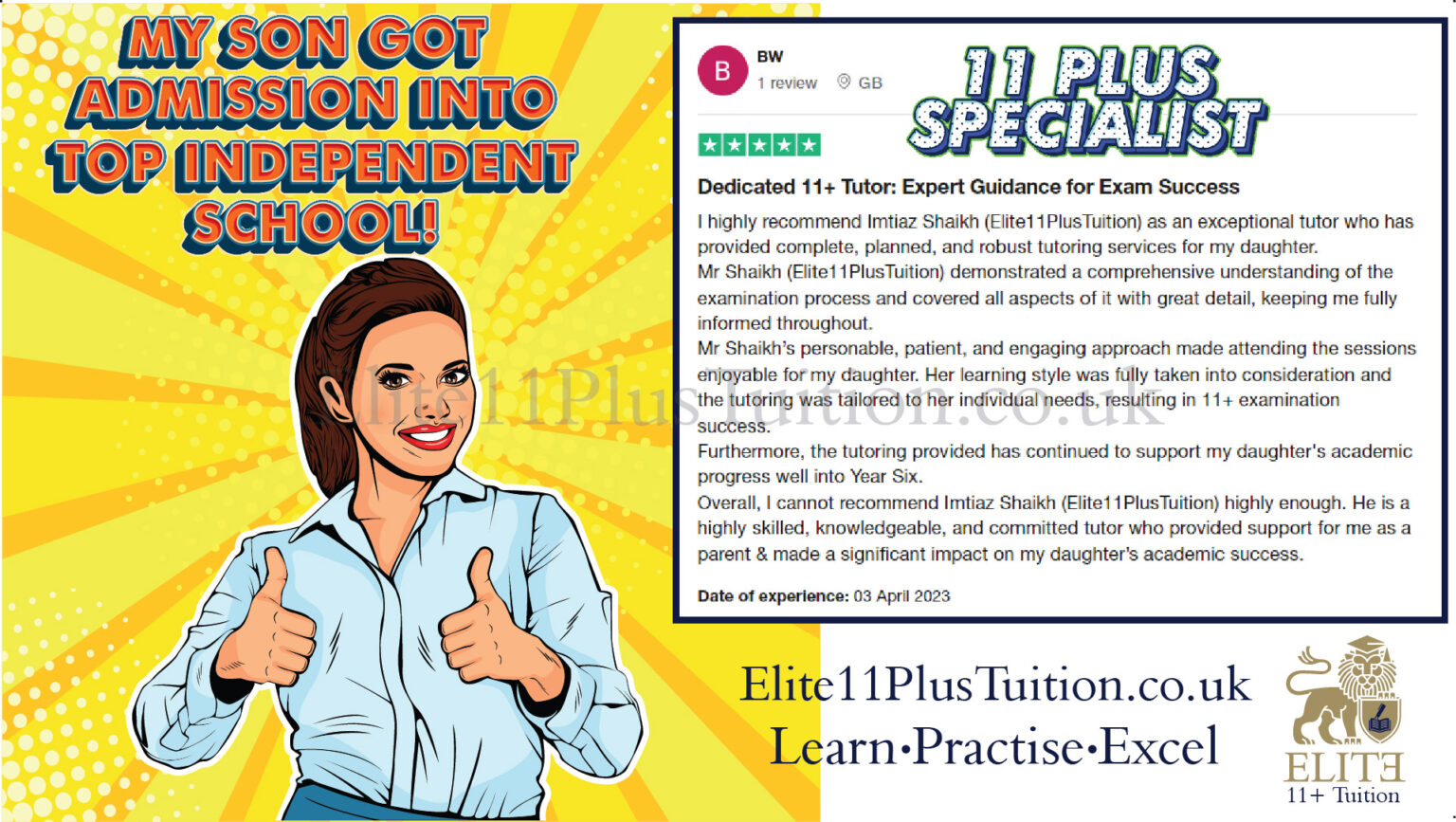 Elite11PlusTuition provide highly qualified DBS checked educators who are UK qualified teachers with extensive experience in 11 Plus exam preparation. Our tutors’ deep understanding of the exam and engaging teaching methods ensure complex concepts are easily accessible for young learners. With a proven track record of success, we consistently help students gain admission to top grammar and independent schools, providing the best possible preparation for exam excellence.
